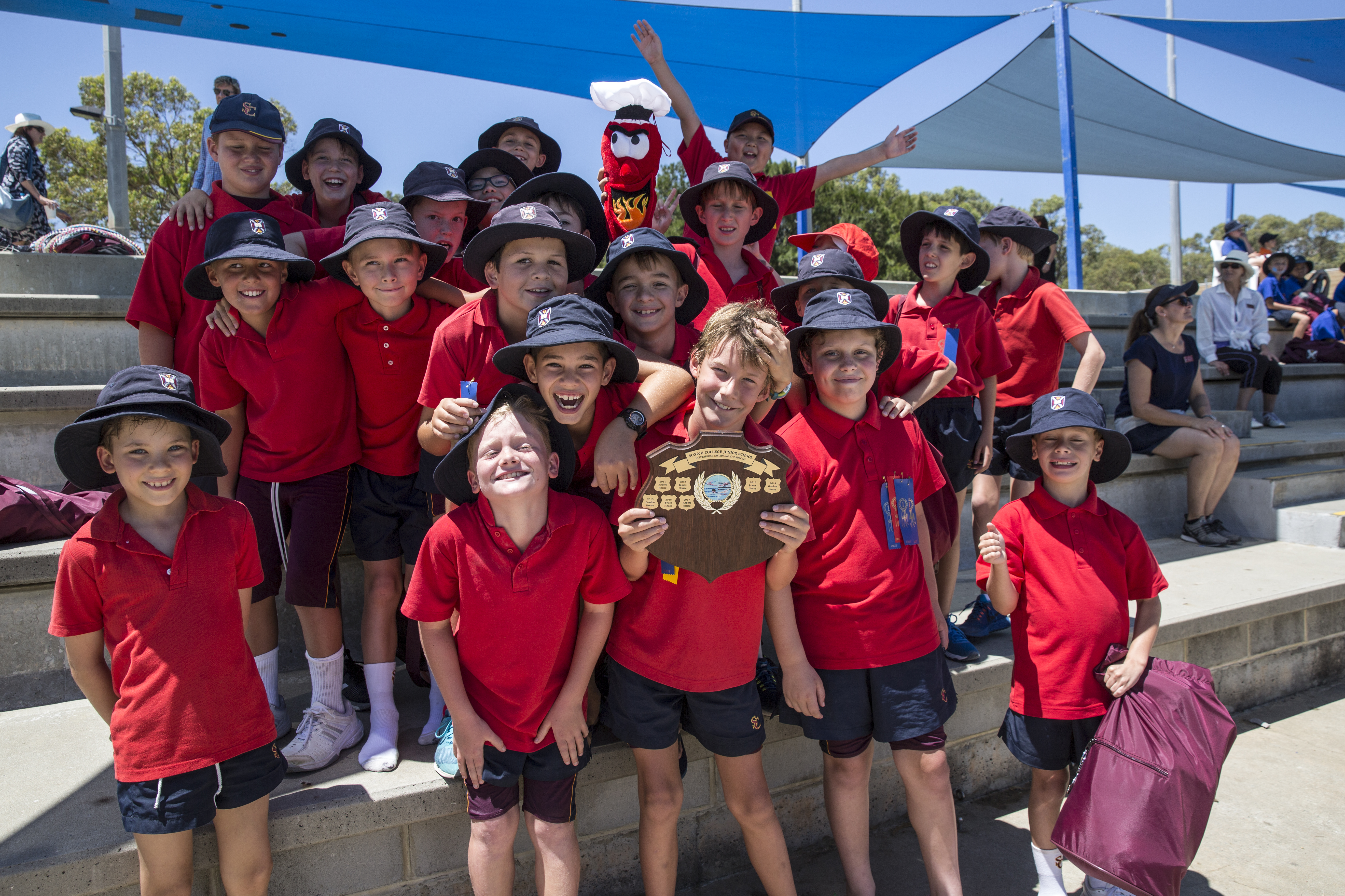 The Scotch Junior School Inter-House Swimming Carnival for boys in Year 3, 4 and 5 took place at HBF Stadium on Wednesday 14 February. A beautiful Perth summers day provided perfect conditions for the students to compete in a fun and friendly environment for their school house. A great day was had by all the students as they competed for and against their friends at the College. There were some fantastic swims in all the year groups with the Year 3 boys sharing plenty of exciting races. In Year 4 Tom Ahern and Andrew Katsambanis had some titanic struggles across numerous races and in Year 5 Xavier Smith displayed amazing talent in winning all 4 Division 1 races in Year 5. There was some fantastic competition for the house shield with all the races contributing toward the final outcome. Andrew and Robert House swapped the lead numerous times throughout the day, but it was Robert House who managed to clinch the shield for the second year in a row.