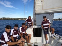 The College Cup inter-school old boys' sailing regatta was held on Sunday 5th May. It kicked of at Freshie at [8.30am] and the "Bull's and "Colt's" were out in force as always it was a fantastic day on the water, with unashamed rivalry between each college's boats only overshadowed by the important "Best Dressed Team" award! Scotch finished a credible third place, having the wind stolen from us by Christ Church who won the overall event for the second year running. However we did win the "Best Mascot" award with a Piper on the back of Kim Gamble's spectator boat. Thanks to all who supported the event including OSCs - Peter Barblett, Kim Gamble and Jim Stevenson.