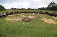 The Middle and Junior Schools worked collaboratively on a fantastic Sand Art Mural on the oval. The Mural had 20 circles, each designed by a class. Additionally, some of the Indigenous Senior School boys contributed to the Mural with a Snake. All of the circles were joined signifying the Scotch College community. Even though we had rain throughout the week, the design lasted and looked great.