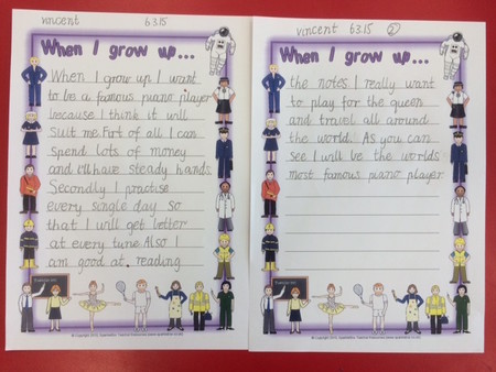 Our Year 2 boys have been in school for only three and a bit years. They have tried so very hard to learn and improve. They have been working in the writing skills through our VCOP (Vocabulary, Connectives, Openers and Punctuation) programme. Their development, so far, is outstanding and each boy has made progress they should be very proud of. This represents the success they have enjoyed in their learning journey so far. Below are a few examples of their work.