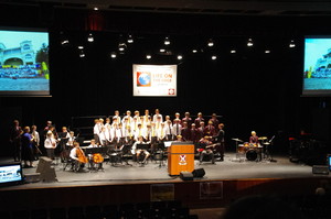 During the recent Round Square Conference three Scotch College ensembles performed featured music items. The Senior String Quartet featured Charlie Thomas on Didgeridoo and the Senior Jazz Ensemble Rhythm section with Nicholas Clarnette (Year 11, Alexander) on Tenor Saxophone all performed with exceptional musicianship during the opening ceremony. For the closing ceremony the Scotch Youth Voices sang a rousing rendition of "The Twist" which was enthusiastically received by the audience with all delegates in the auditorium spontaneously dancing throughout the performance, congratulations to all involved with these performances.