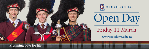 The Headmaster, staff and students invite you to the Scotch College Open Day from 8.15am, finishing at 11.00 am.