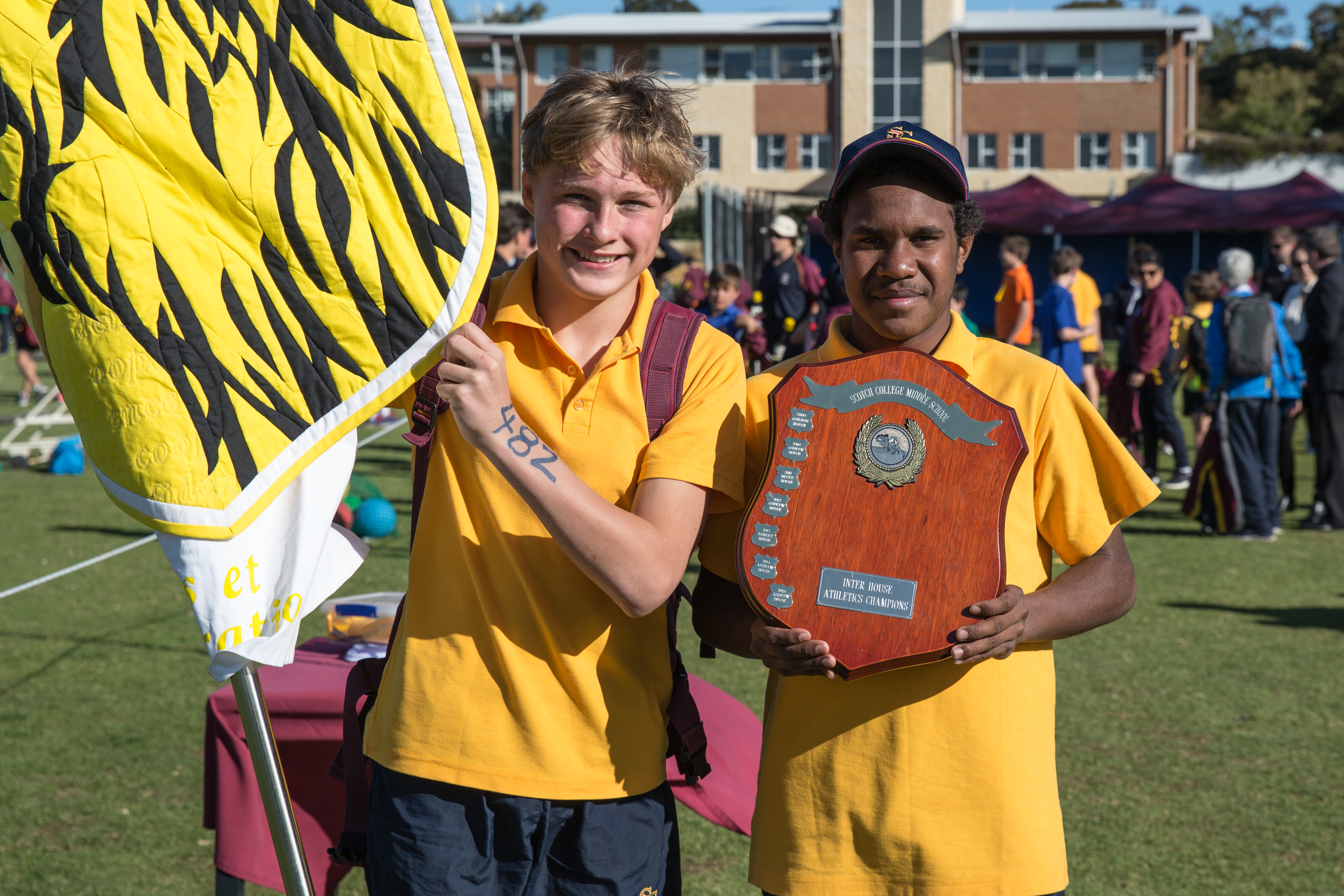 After seeing some fine performances on the track by the Year 6 students, it was now time for the Year 7s. Again, the level of competition and House spirit was fantastic to see and with a sneak peek at the early overall House points, it was a tight competition. A highlight from the Year 7 events was a blisteringly fast run by Max Mumme (7.6T) in the 1500m, along with Sam Barrett-Lennard (7.4A) jumping an astonishing 1.54m in the High Jump competition. Well done boys!