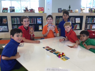 Last Wednesday morning, a group of intrepid Francophiles met in the Junior School Library for the first French Games Club session of the year. Dressed in their colourful swimming carnival shirts, they were a bright collection of eager students. For our first activity, we played the well-loved card game "Dixit" which involves the boys choosing french colour themes and guessing which card belongs to whom. Bleu is a popular theme among the boys, but the cards provide a whole collection of colour possibilities for the game. Our location in the library meant we were able to collect some extra early morning students - not actually enrolled in the club - to join us for the fun. Today's winner was Madame Vinton followed closely by Ronan with Guy coming in third. Until the next challenge, here's to plenty more early-morning jeux to keep us busy and laughing while using our French.