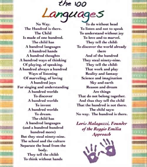 Malaguzzi wrote 'The One Hundred Languages of Children' in recognition of the multitude of ways in which they can express their ideas, thoughts, feelings or frustrations.