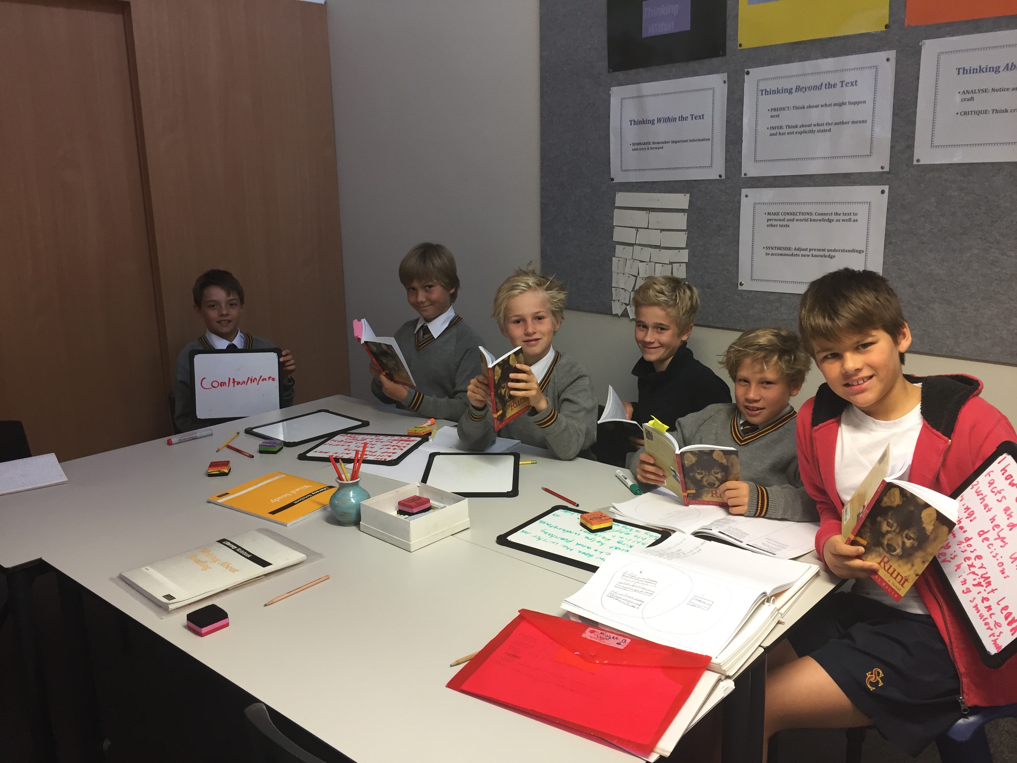 At 7:45 am each Monday, Wednesday and Friday, six dedicated Year Five boys meet and take part in the Levelled Literacy Intervention Program. This program provides explicit instruction primarily on reading strategies and comprehension skills. However, there is a writing component which involves phonics and vocabulary. These boys are to be commended for committing to meeting before school three mornings a week to discuss, analyse and critique a range of literary texts.